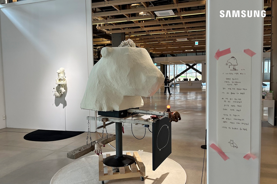 이번 전시는 <복합문화공간 111CM>의 내부 골조와 형태를 닮은 작품들로 구성되어 있는데요. ▲균형에 대하여 ▲같은 마음으로 ▲서서 일하는 사람들 ▲기억하려는 사람의 그림 ▲구름에서 등 9점의 움직이는 조각과 그림들을 만나 볼 수 있었습니다. 지금부터 잠시 작품들을 감상해 볼까요?