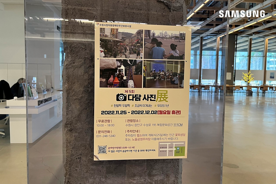 한편, 전시 공간 바로 옆에 위치한 다목적실에서는 정자동 장애인 주간보호시설 [다담 사진전]이 열리고 있어 함께 감상하고 왔습니다. 아쉽게도 12월 2일까지 관람할 수 있었던 사진전이지만, 12월 5일부터 12월 16일까지는 온라인 사진전으로 관람할 수 있으니, 관심있으신 분들은 아래 링크에서 확인하면 됩니다.