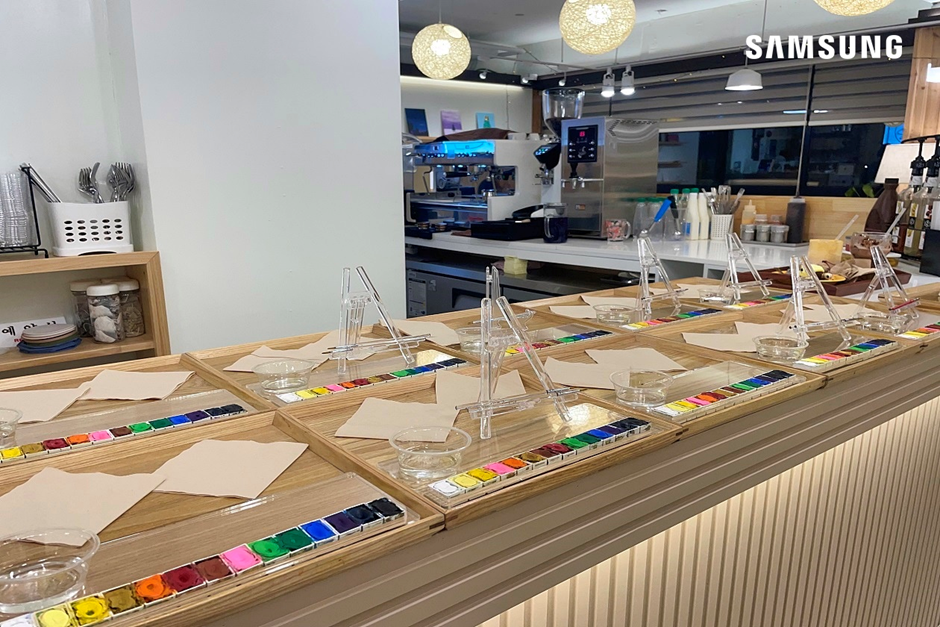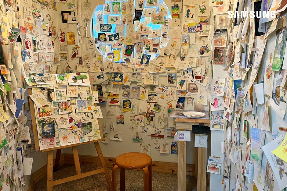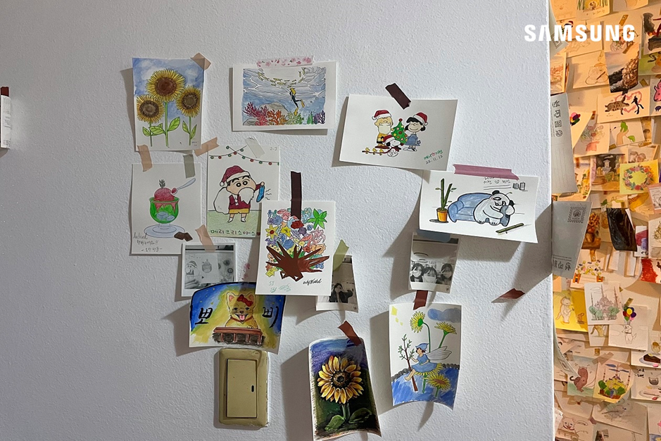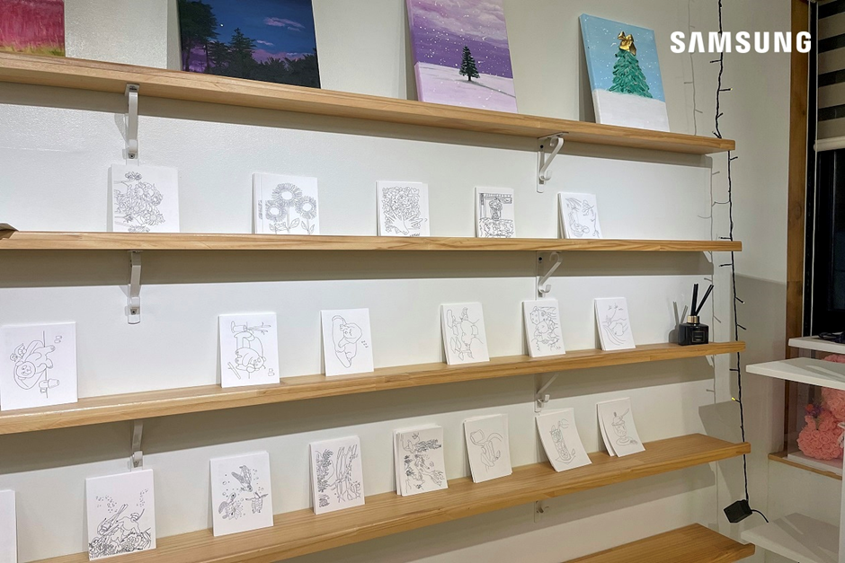 정성스럽게 채색한 나만의 엽서를 벽면에 한 곳에 장식하니, 마치 내 작품을 갤러리에 전시하는 듯한 기분도 낼 수 있어 더욱 좋았는데요. 나중에 다시 와서 내 작품을 찾아보는 재미도 있겠습니다.