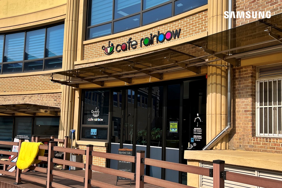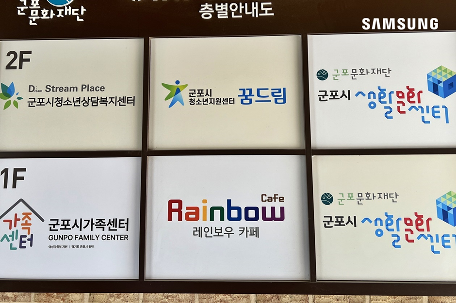 <수리산 상상마을>을 열심히 구경하다 잠시 휴식을 취하기 위해 슬기관 1층에 있는 레인보우 카페로 이동했는데요. 카페 이름인 레인보우는 ‘무지개’라는 뜻으로 다문화와 다국적을 의미한다고 합니다.